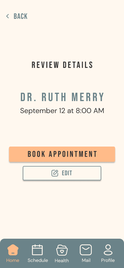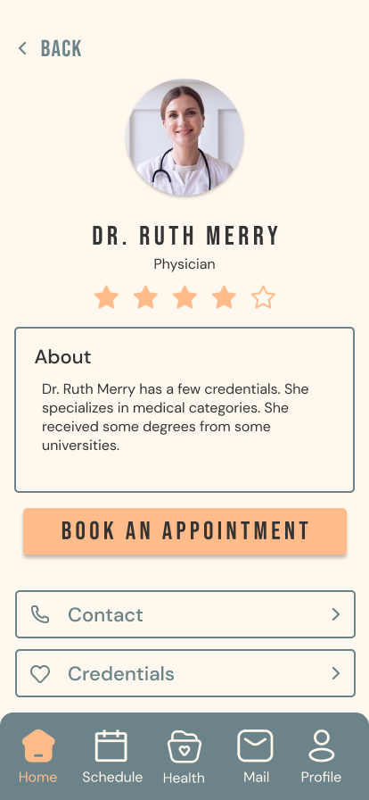 Like many health-focused applications, this design aims to convey a sense of reassurance and positivity, reinforcing the feeling that users are making meaningful steps toward healthier choices. The intention is to create an experience that not only encourages proactive healthcare engagement but also ensures the process remains simple, approachable, and free of unnecessary stress. While visiting a medical professional is not always perceived as an easy or comfortable task, the primary objective is to reduce anxiety by providing an interface that feels calm, intuitive, and supportive.