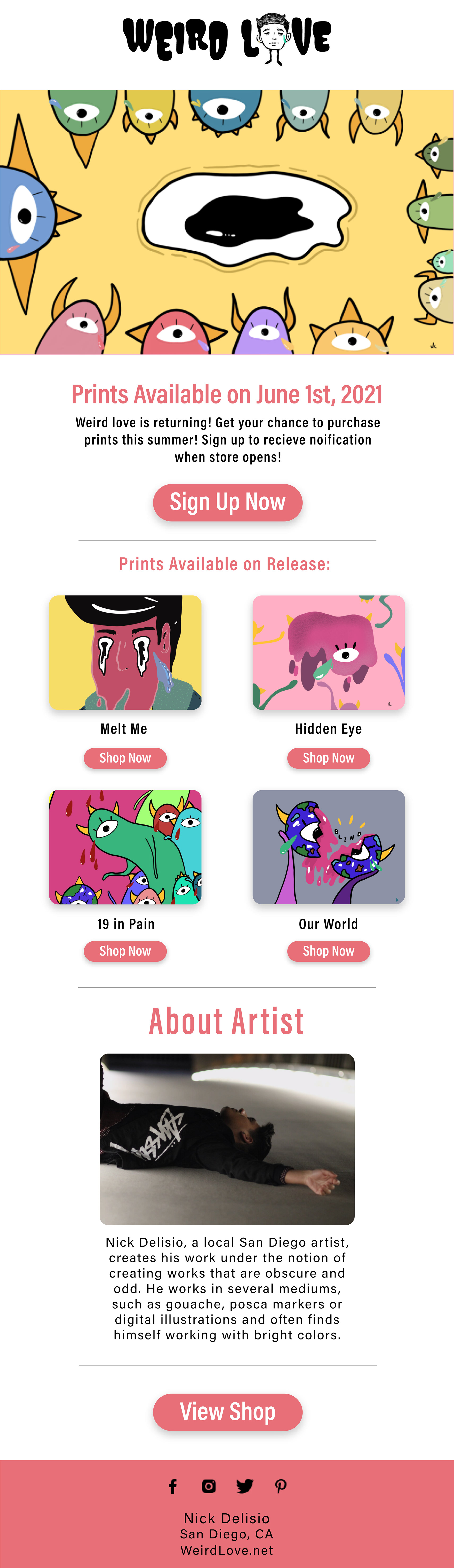 A personal project that allowed me to delve into the world of email newsletter formatting and design. I collaborated with a friend’s brand, Weird Love, to explore design and layout concepts for this email project. This project served as a stepping stone for further exploration into email layout design.